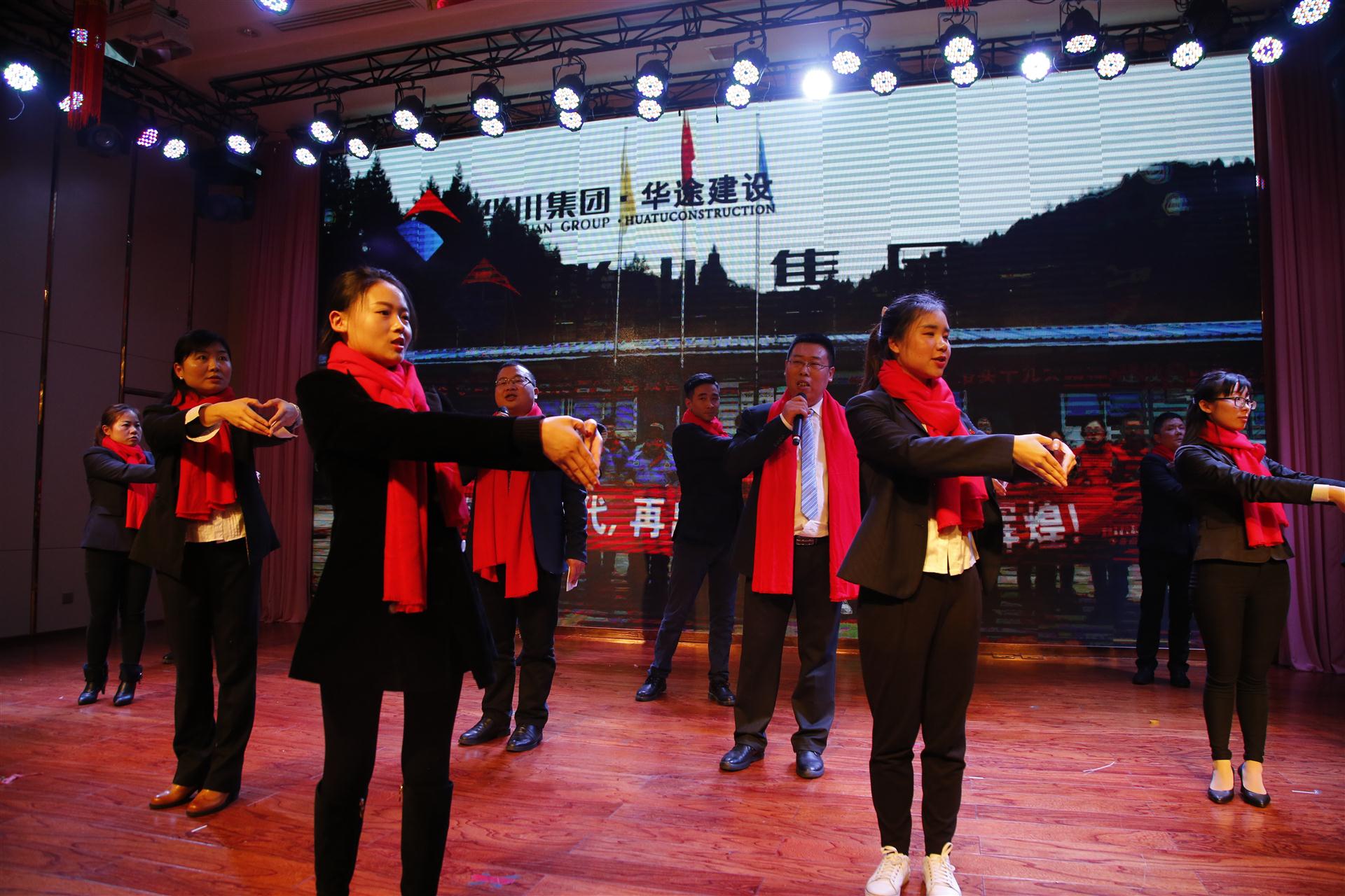 下午一時許,集團舉行了2018年新春團拜會。與會人員歡聚一堂,喜迎新春,共謀未來。團拜會在歌舞《好運來》中熱鬧開場。隨后舞蹈、合唱、歌伴舞悉數登場,節目新穎、編排創新,華北片區帶來的改編自《成都》的《工地》和改編版《為了誰》,唱出了華北片區修路鋪橋的艱辛,一句句歌詞展現著一幅幅畫面,一幅幅畫面都是華川兒女辛勤耕耘的成績。華途公司帶來的手語舞《相親相愛的一家人》、衡信公司帶來的歌伴舞《感恩的心》表達了華川兒女一家人,齊心上下共迎美好未來的憧憬。整場團拜會歡樂熱鬧,洋溢著喜慶歡快的節日氛圍。大家笑語不斷,不時舉杯共慶,共敘家人情誼、共話未來發展。