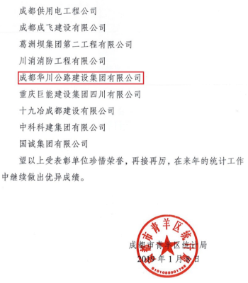 由于上報時間及時、數據準確、流程規范,集團公司、華途公司、華霆公司在青羊區200余家建筑企業統計工作考核評比工作中脫穎而出,體現了集團公司及子公司已規范按照國家大數據統計工作要求開展、落實工作,具有先進性及代表性。