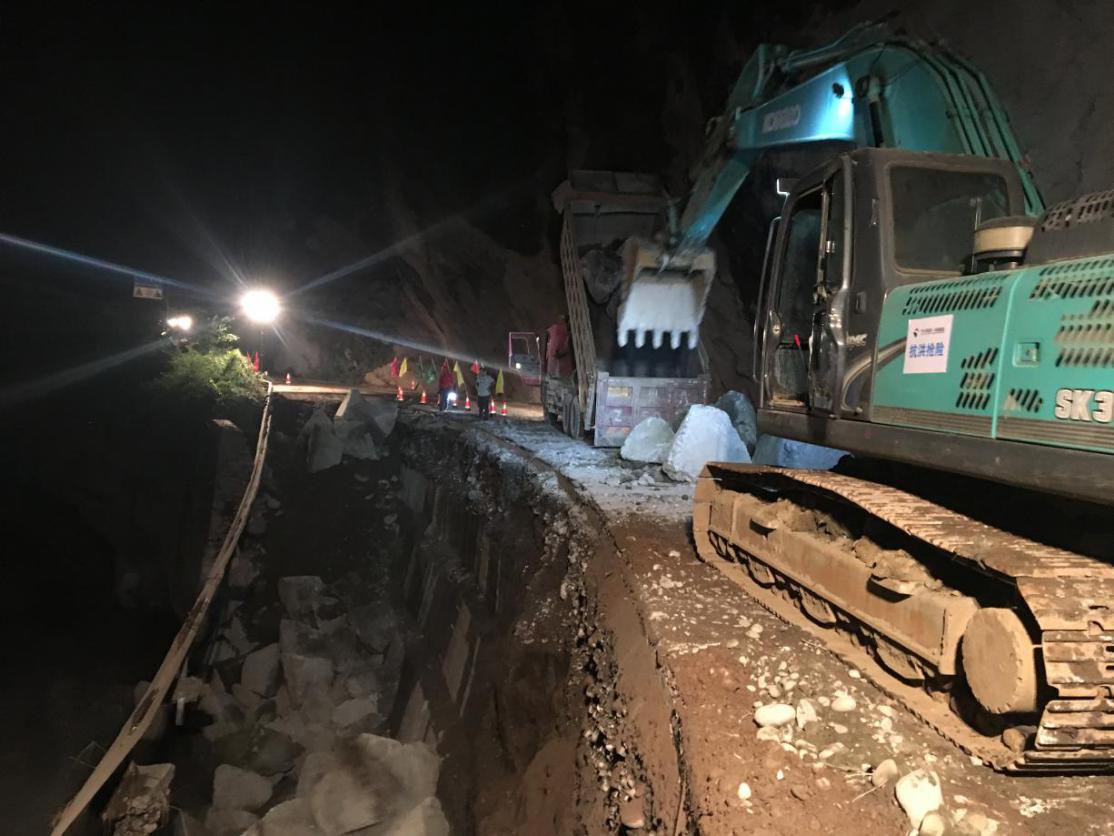 集團(tuán)應(yīng)急搶險(xiǎn)隊(duì)伍人工清理被山體滑坡再次損毀的5號(hào)點(diǎn)位