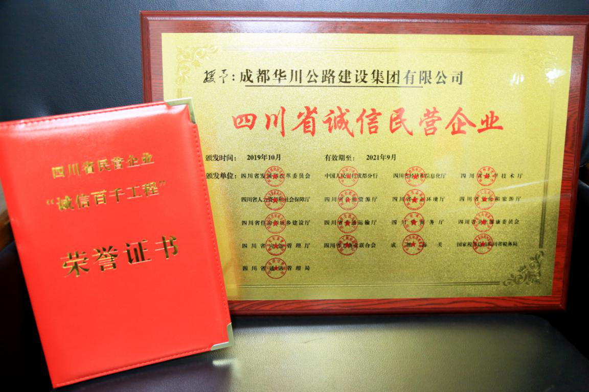 另訊,集團下屬成都華鼎市政工程有限公司也通過自主申報評選,成功獲評“四川省誠信民營企業(yè)”榮譽稱號。