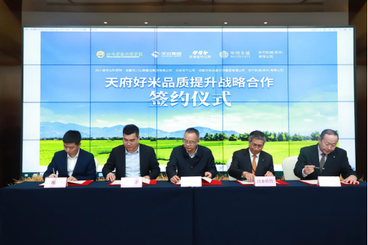 12月17日上午,四川省農科院、華川集團與日本佐竹公司在華川天府良倉舉行了“天府好米品質提升戰略合作”三方簽約儀式。四川省農業科學院副院長張雄、日本佐竹公司中國總代表佐々木講介、華地永盛公司總經理石小軍等人出席本次簽約儀式。
