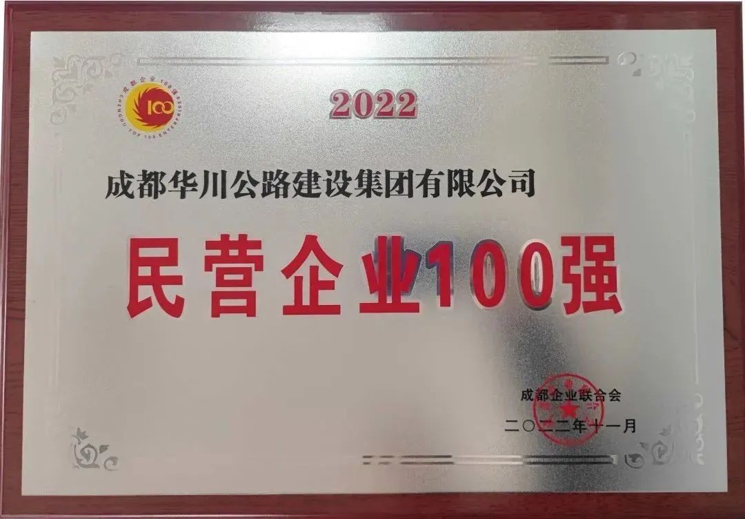2022年11月25日,成都企業聯合會正式發布“2022成都企業100強”系列榜單。集團再次榮獲2022年“成都市民營企業100強”榮譽稱號。
