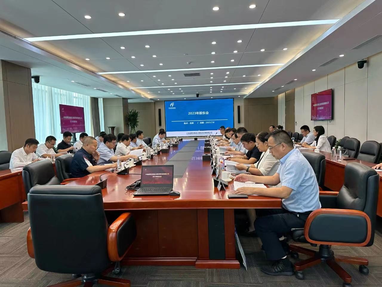 7月6日,中電建冀交高速公路投資發展有限公司在北京召開2023年股東會暨三屆一次董事會、監事會。河北交通投資集團有限公司法定代表人、董事長王國清,中國電力建設股份有限公司授權代表、中電建路橋集團有限公司法定代表人、董事長周孝武,成都華川公路建設集團有限公司法定代表人、董事長謝應文,公司董事長劉暉,公司黨委書記、總經理李輝及各股東方、董事、監事成員出席了會議。