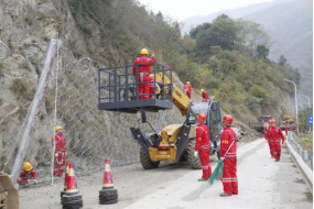 集團參演科目為S105線南壩路段受到地震引發的次生災害影響,導致山體滑坡、塌方,需要緊急搶通。演練中,根據指揮部命令,集團迅速組織應急救援隊伍到達受災路段,快速清理塌方、落石,并與武警救援力量密切合作,共同完成了靠山體一側的高空作業,成功搭建起20米長的防護網,在最短時間內打通了青川至平武方向生命通道,為后續災區救援爭取了寶貴時間,圓滿完成了演練任務。
