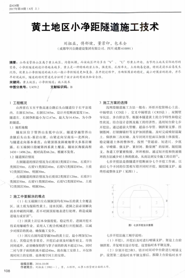 5月12日下午,山西右平項(xiàng)目部收到來(lái)自中央級(jí)期刊《交通世界》(旬刊)編輯部寄來(lái)的學(xué)術(shù)論文刊登賀信,祝賀由成都華川公路建設(shè)集團(tuán)有限公司山西項(xiàng)目部項(xiàng)目總工程師劉拓益,項(xiàng)目副經(jīng)理董景印、包術(shù)全,項(xiàng)目副總工傅郁建合作的學(xué)術(shù)論文《黃土地區(qū)小凈距隧道施工技術(shù)》被采用發(fā)表,該項(xiàng)學(xué)術(shù)論文的發(fā)表為集團(tuán)公司在科技成果方面再次添磚加瓦,同時(shí)表明了山西項(xiàng)目在科技成果的創(chuàng)新工作上再上了一個(gè)新的臺(tái)階。