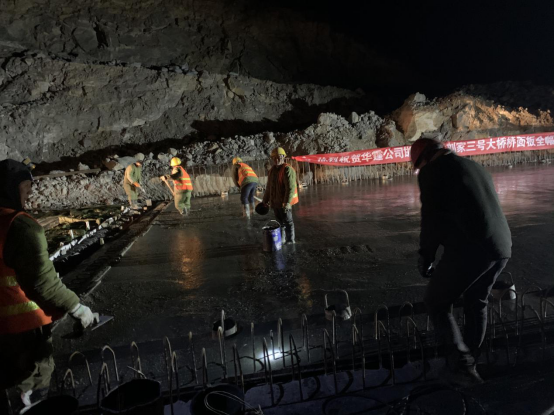 (劉家3#大橋夜間施工橋面板收面作業中)