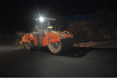 在各施工現(xiàn)場,不懼嚴寒、熱火朝天。攤鋪機、壓路機、運料車等各類施工機械一派繁忙,全體人員履職盡責、分工協(xié)作,各項施工作業(yè)有序進行著。項目領(lǐng)導班子工作重心前移生產(chǎn)一線,實行現(xiàn)場辦公,第一時間解決施工重難點,日夜巡查督導質(zhì)量安全、施工進度、材料保供等工作內(nèi)容,確保項目生產(chǎn)高效推進;工程人員加強前后場的相互配合、按需供料,保證施工不間斷;5+2、“白+黑”、雨加晴,24小時堅守崗位、奮戰(zhàn)一線,嚴格按照施工技術(shù)及標準規(guī)范高標準、嚴要求開展每天的施工任務(wù);時刻緊盯每一個施工環(huán)節(jié),嚴格控制施工質(zhì)量,一一落實混合料配合比、溫度、厚度、寬度、攤鋪、碾壓等質(zhì)量控制要點,確保攤鋪、碾壓等工序的有序銜接;同時強化安全規(guī)范操作,嚴防各類安全事故發(fā)生。