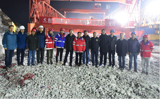 集團黨委書記、董事長、總裁謝應文,河北交投集團紀檢書記李海衛(wèi),中電建冀交投資發(fā)展有限公司總經(jīng)理唐蘭軍,集團副總裁熊文,集團總裁助理、華北片區(qū)指揮長陳杰,集團總裁助理、華北片區(qū)常務副指揮長牟世輝,邯鄲項目各參建子公司負責人等來到現(xiàn)場,共同見證了最后一榀鋼箱梁假設。謝總在現(xiàn)場談到:這次太行山攻堅戰(zhàn)充分展現(xiàn)了我們?nèi)A川集團“頑強拼搏,永不言敗”的精神,全體施工管理人員眾志成城,排除萬難,向著一個目標奮力拼搏。感謝全體參建人員的辛勤付出,感謝各級單位的全力支持。我們大家都是奮戰(zhàn)在太行山的戰(zhàn)友,這段時間在施工一線我看到了很多感人的事,認識了很多樸實勤奮的筑路人,他們起早貪黑、加班加點全力為目標,我為我們光榮的路橋人感到自豪。