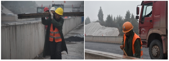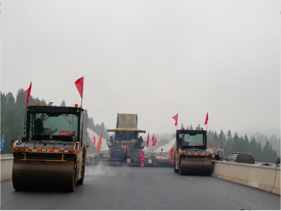 觀施工現場,華川旗幟高高飄揚,迎著微風,伴著小雨,1臺攤鋪機、5臺壓路機、15臺運輸車相互密切配合,攤鋪、碾壓機器發出的聲響,奏出了一曲鏗鏘有力的“施工進行曲”?,F場負責人及時查看攤鋪厚度,確保厚度在合理范圍內,技術員實時查看瀝青攤鋪溫度,項目部領導駐現場指導,經過各級人員的共同努力,精心組織、標準化,文明化施工,攜手完成了本次試驗段鋪筑工作。