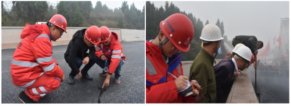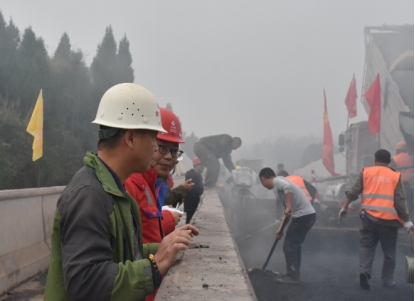 鋪筑過程中,營山代表處、2駐地辦領導到現場指導工作,詳細查看各項施工工序,現場文明施工情況,是否在保質量、保安全情況下進行。肯定了項目部對本次試驗段鋪筑的準備工作,并對現場攤鋪、碾壓等質量控制、安全文明施工等方面提出寶貴行意見,得以試驗段更加完美鋪筑完成。