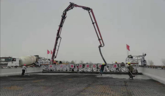 11月12日下午,津石項目一工區淀南新堤大橋最后一聯橋面鋪裝順利澆筑。至此,津石高速JSLQ5標段橋梁一隊橋梁工程全部結束,同時也意味著津石項目一工區全體施工人員在“決戰60天”大干熱潮中的晝夜施工、辛勤付出取得了回報。第一分公司總經理羅劍虹、津石總包部總工程師隆賢偉攜總包部有關部室人員及一工區將士到場祝賀。