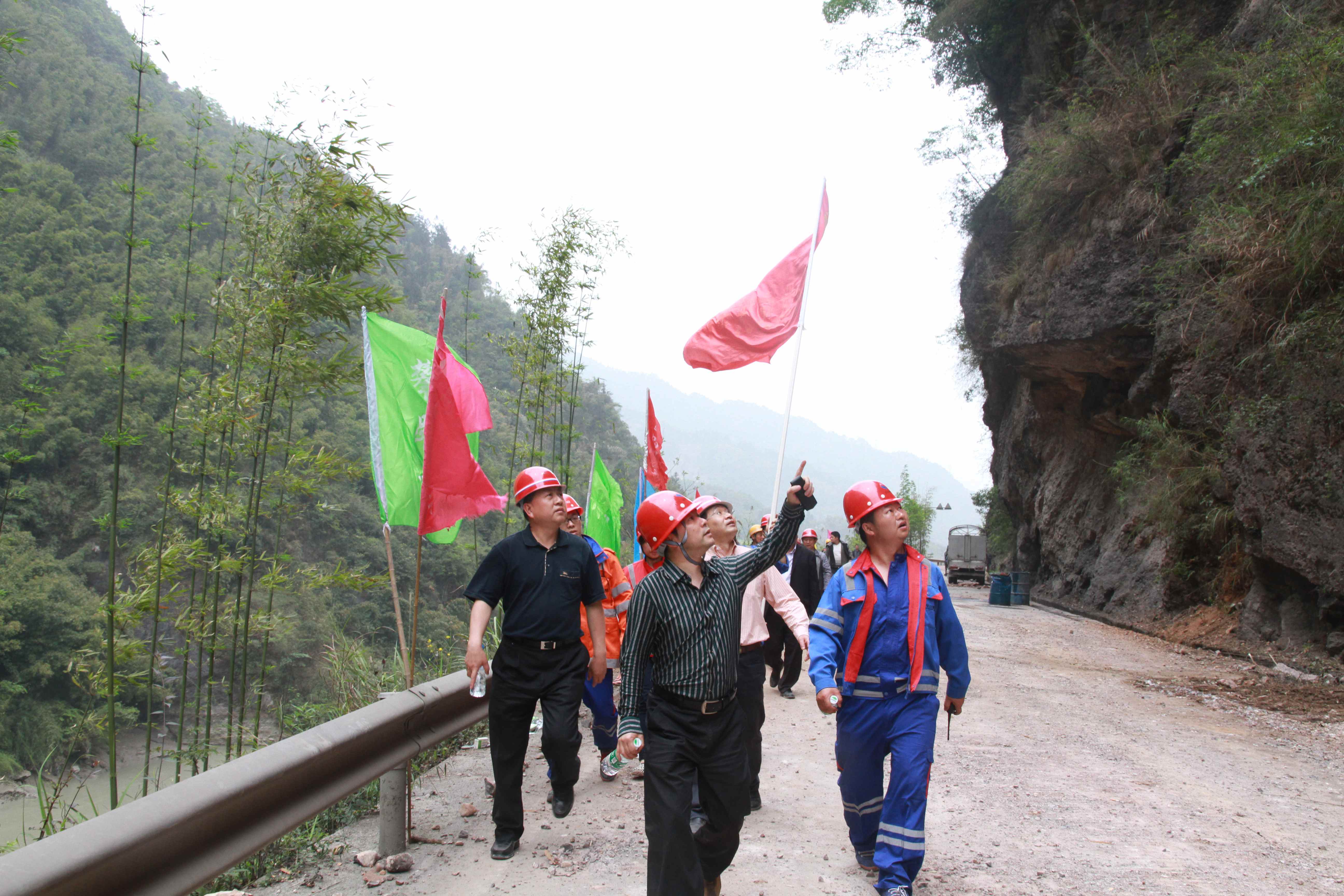 (華川集團搶險救災隊伍人員在“4.20”救災一線)(集團董事長謝應文在寶盛大橋搶險加固現場接受采訪) (華川集團在“4.20”抗震救災一線)